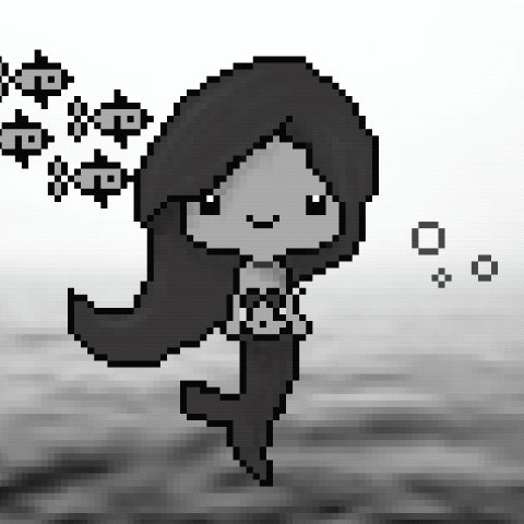 • black and white, pixel mermaid, pixel art