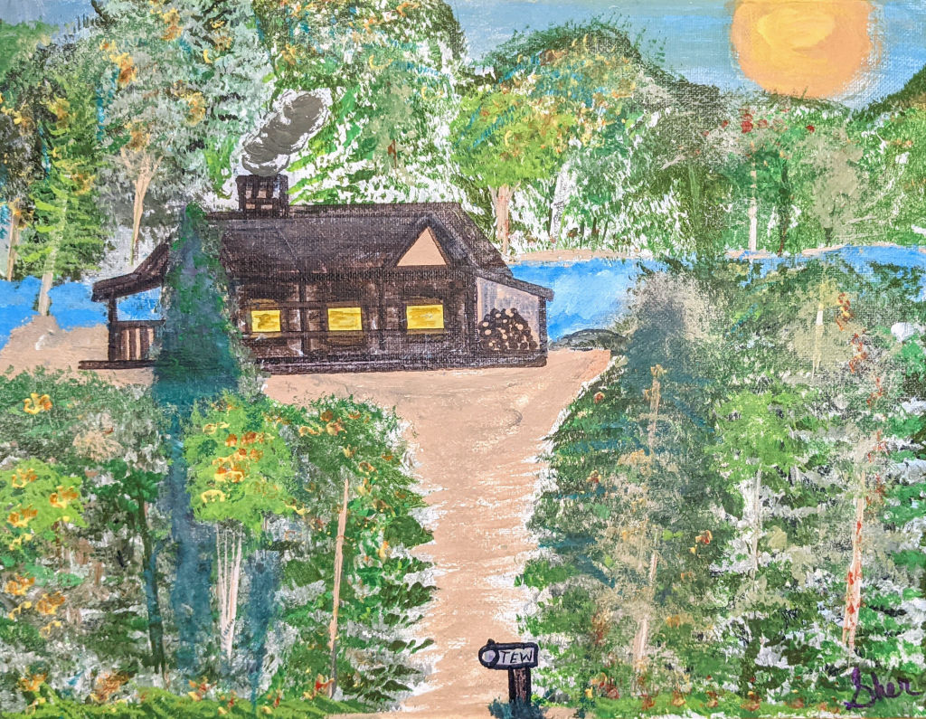 • rodross,cabin,woods,painting,canvas,oil,commission