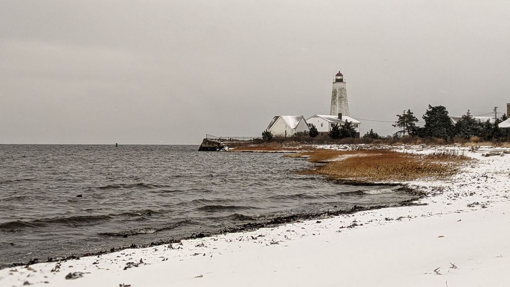• lighthouse snow ocean water Christmas
