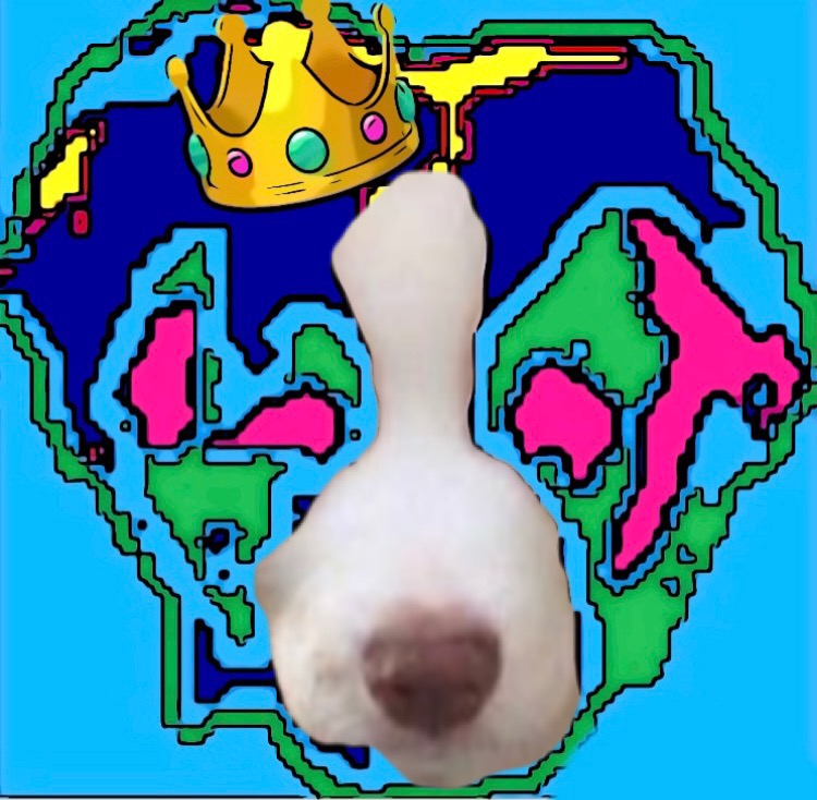 • This pixe art pup is rocking a crown and the realistic nose
