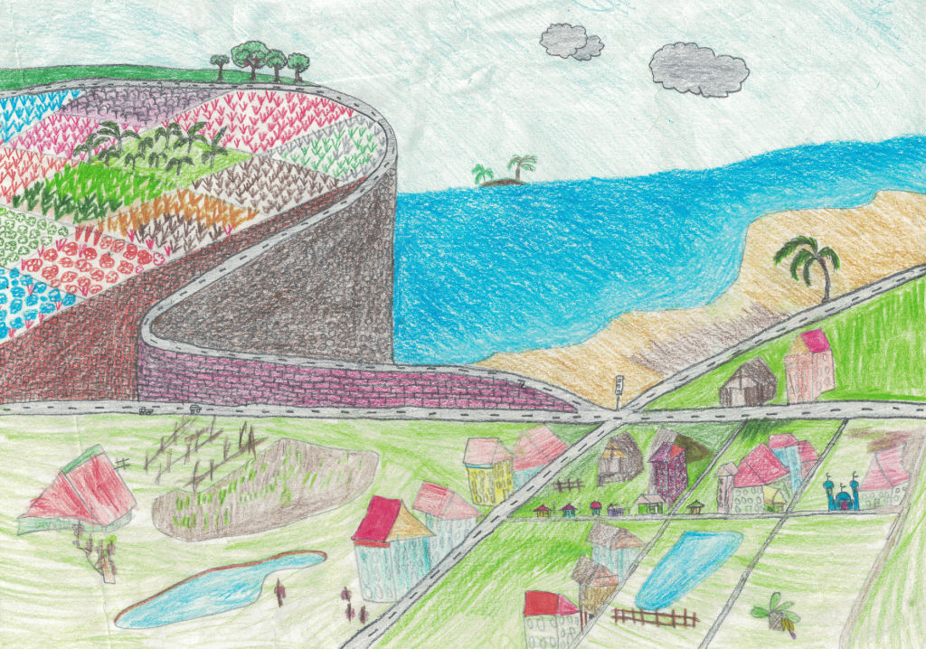 • Kids Drawing: Village Near Sea