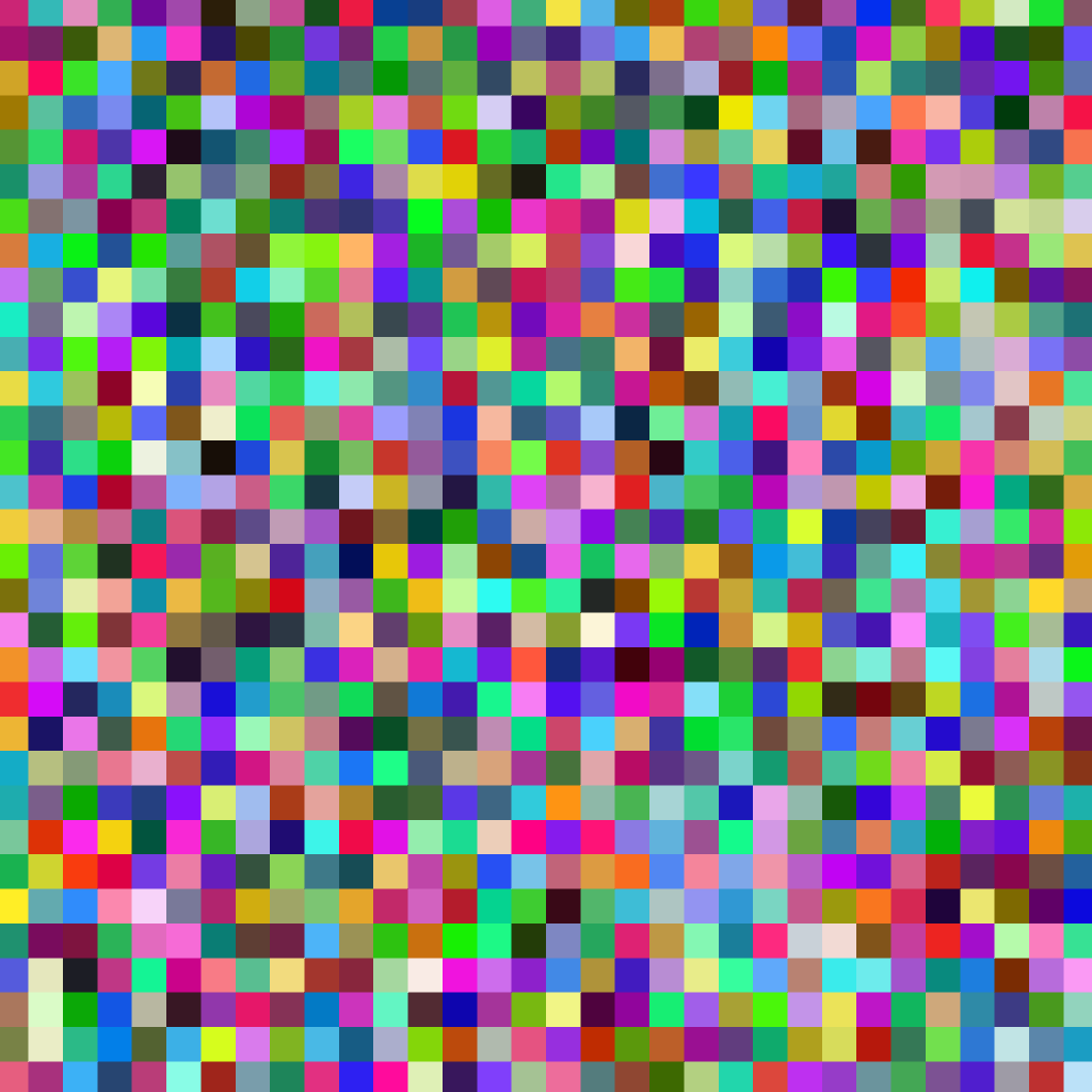 • 1024 blocks in 1024x1024. Random color in each block. This random set will have 64 pictures. You look at its head, watch the body, now see its tail.