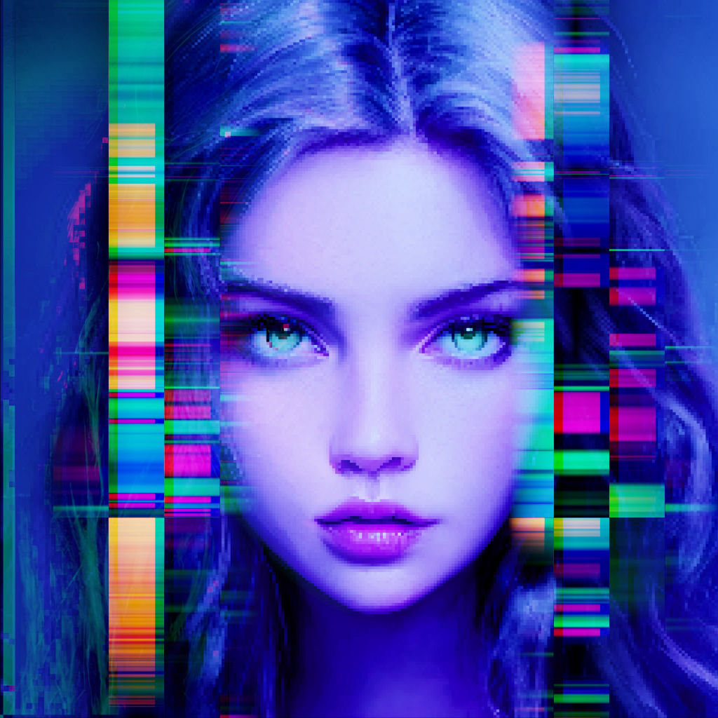 Series consists of 100 unique portraits in 80's retro gaming color grade glitch