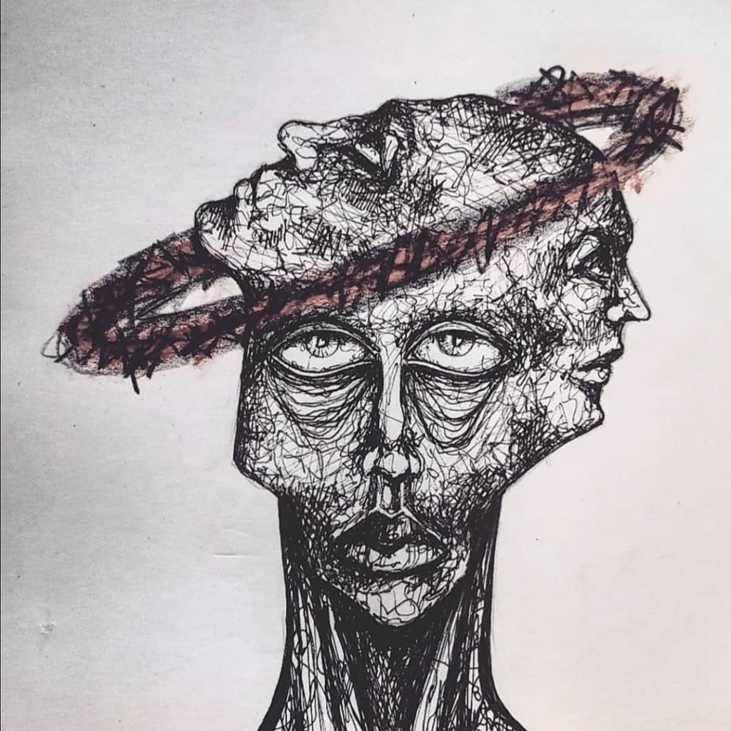 • Pen and acrylic on paper