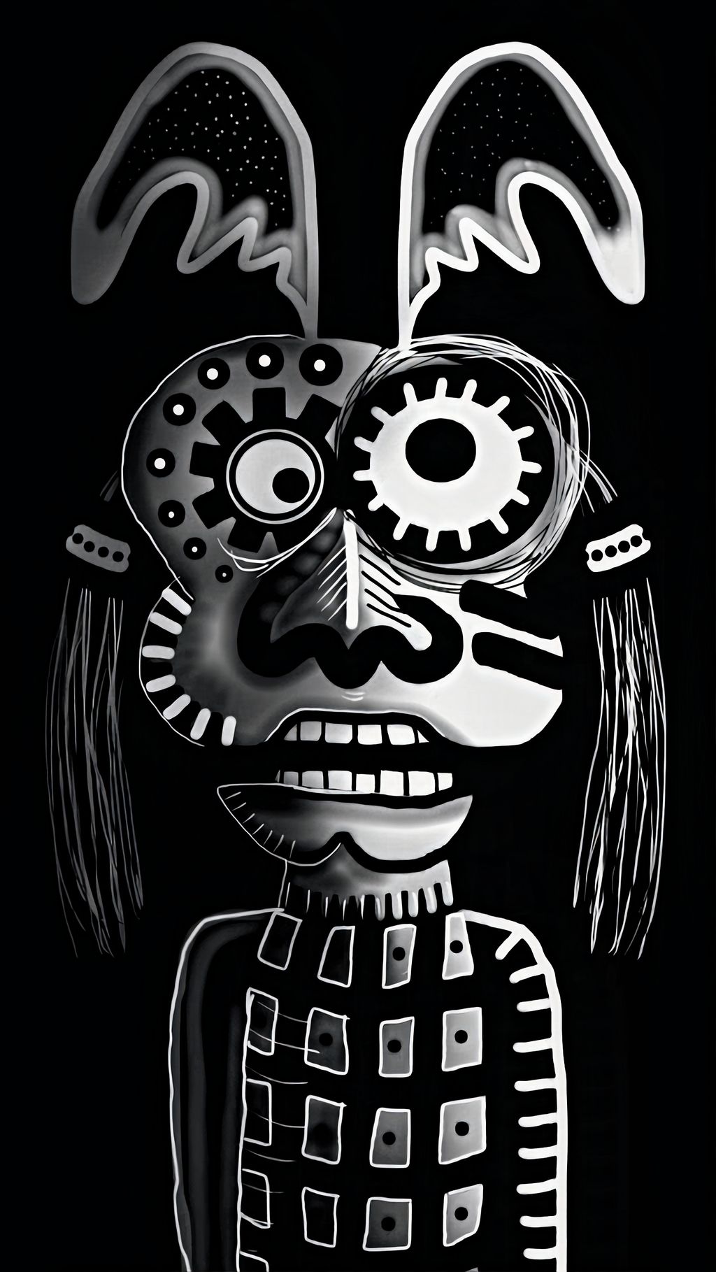 1/1 unique handmade painting by pen, pencil, marker and charcoal.