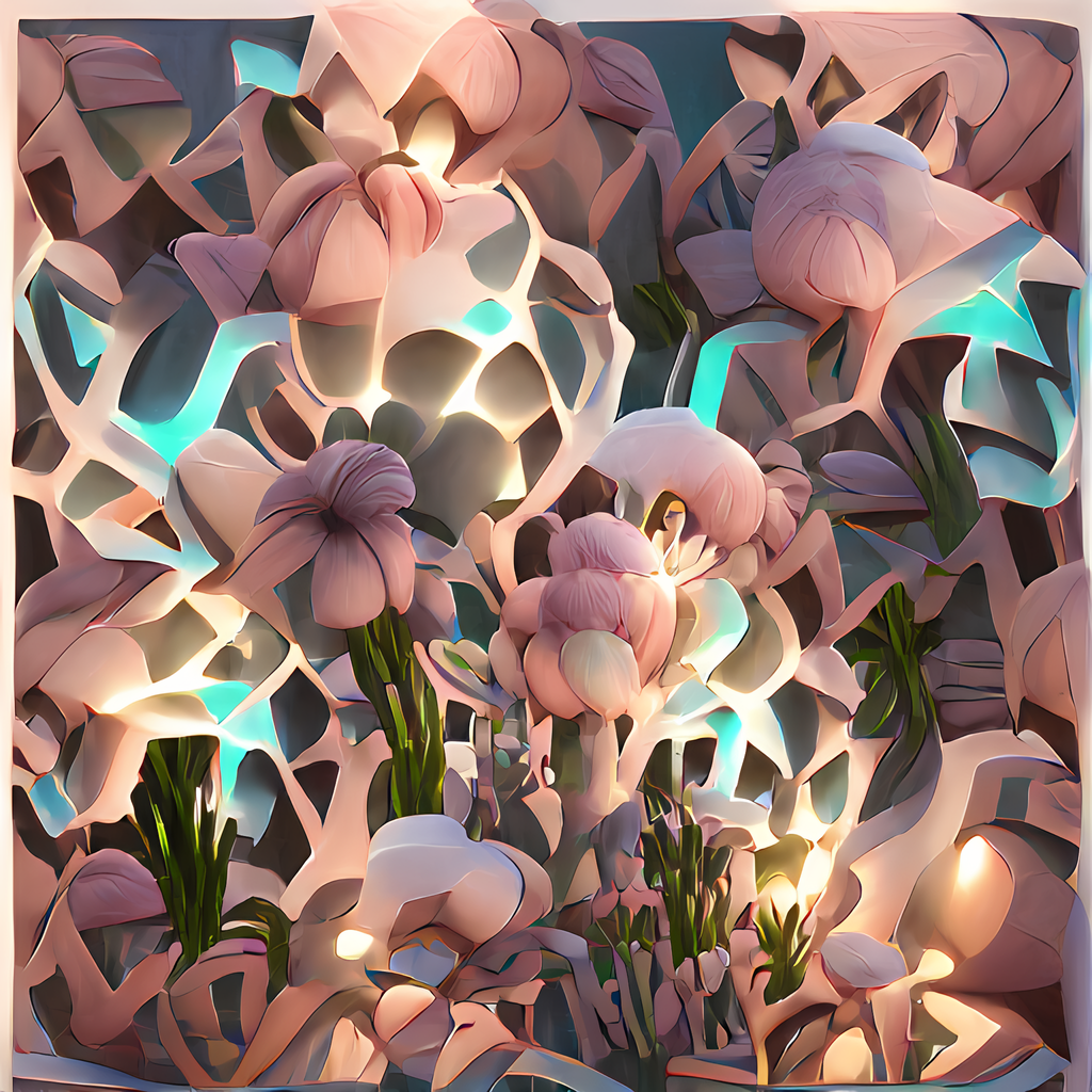 • AI generated Art, exclusive to the Harmony blockchain. Each piece is created by machine learning using neural network technology with the title of the piece used as input ("seed")."Floral Structure" is a Harmony NFT project Launching on DaVinci by audiostatic